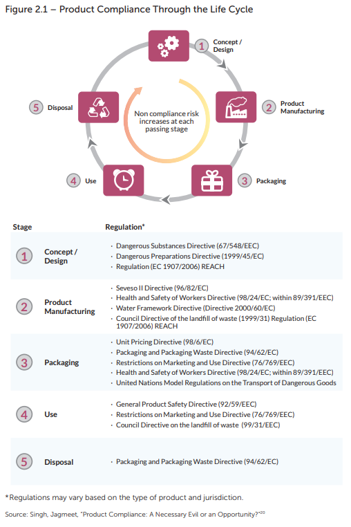 Product safety compliance requires products to conform to regulations that ensure the product does not harm consumers, property or the environment throughout the product life cycle from inception to disposal. Regulations govern product concept/design, manufacturing, labelling, packaging, use and disposal (see Figure 2 1)